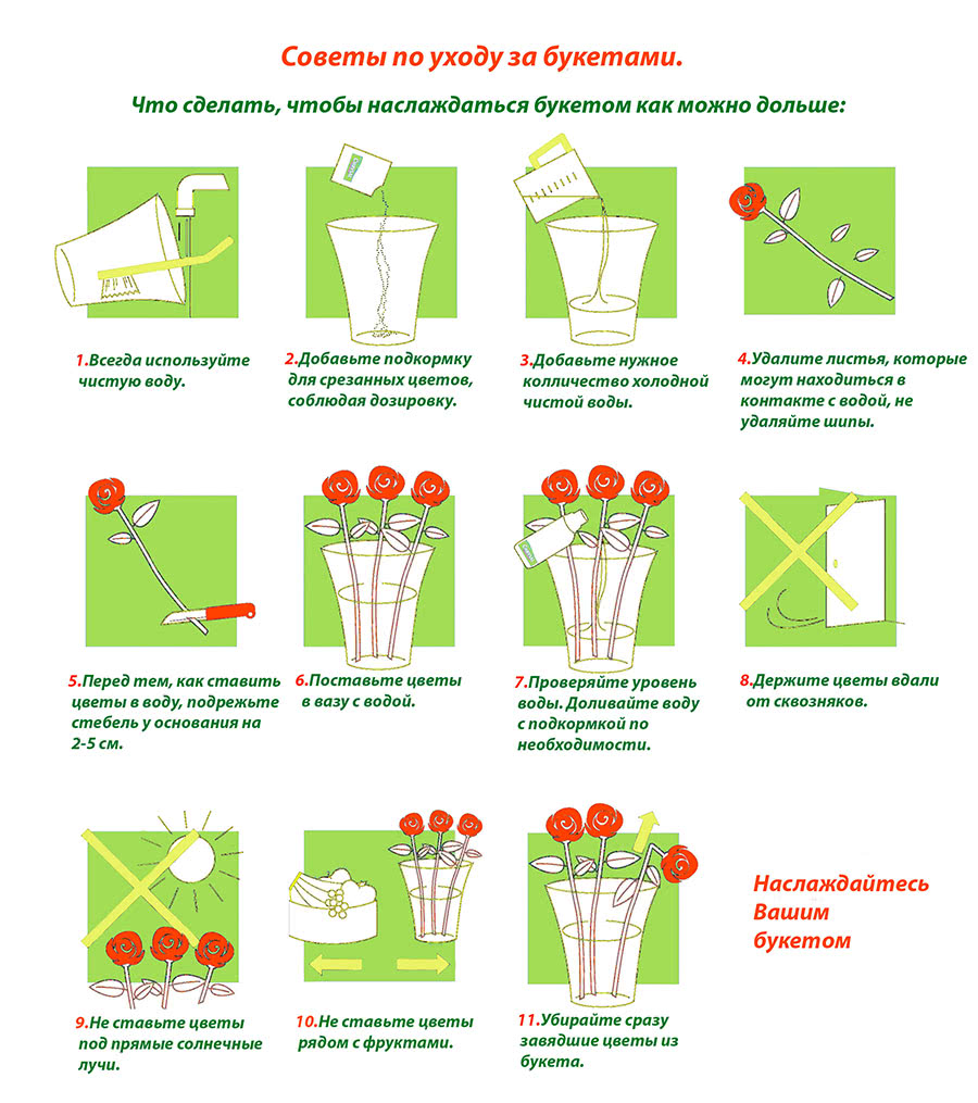· цветы желательно подкармливать для сохранения их свежести. В воду бросают сахар, уксус или таблетку аспирина;