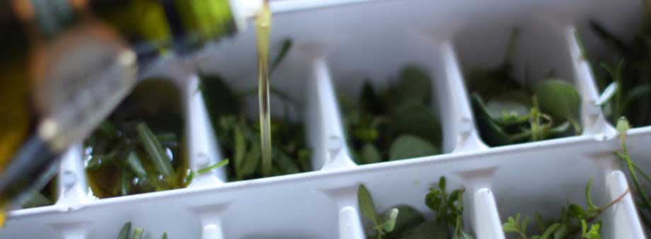 Кубики зелени с маслом. Они готовятся так: зелень нарезается, предварительно промытая и высушенная. Кладется в формочки для льда и заливается оливковым маслом.
