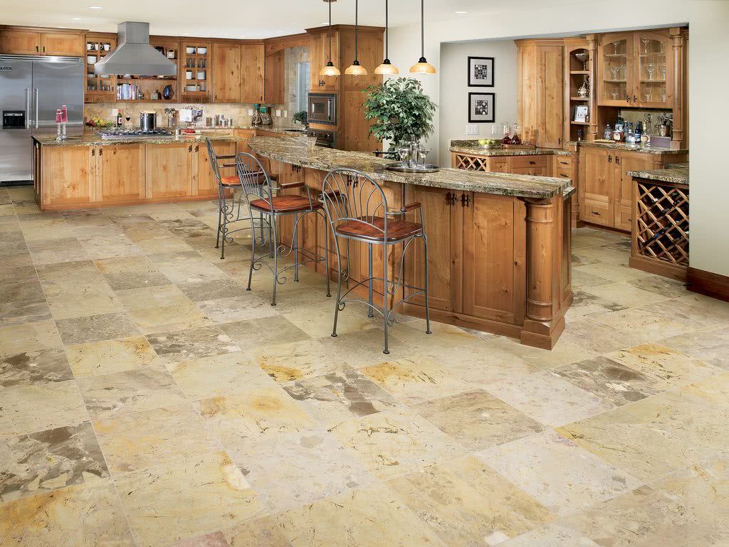 Многослойное покрытие — это современное материал на пол, состоящий из 6 слоев, где есть основа, стекловолокно, декорирующий слой и прочное верхнее покрытие, исполняющее защитную функцию. Также необходимо обратить внимание на то, современные материалы обладают функцией антибактериального покрытия и антискольжения, что очень удобно при использовании в кухонном помещении