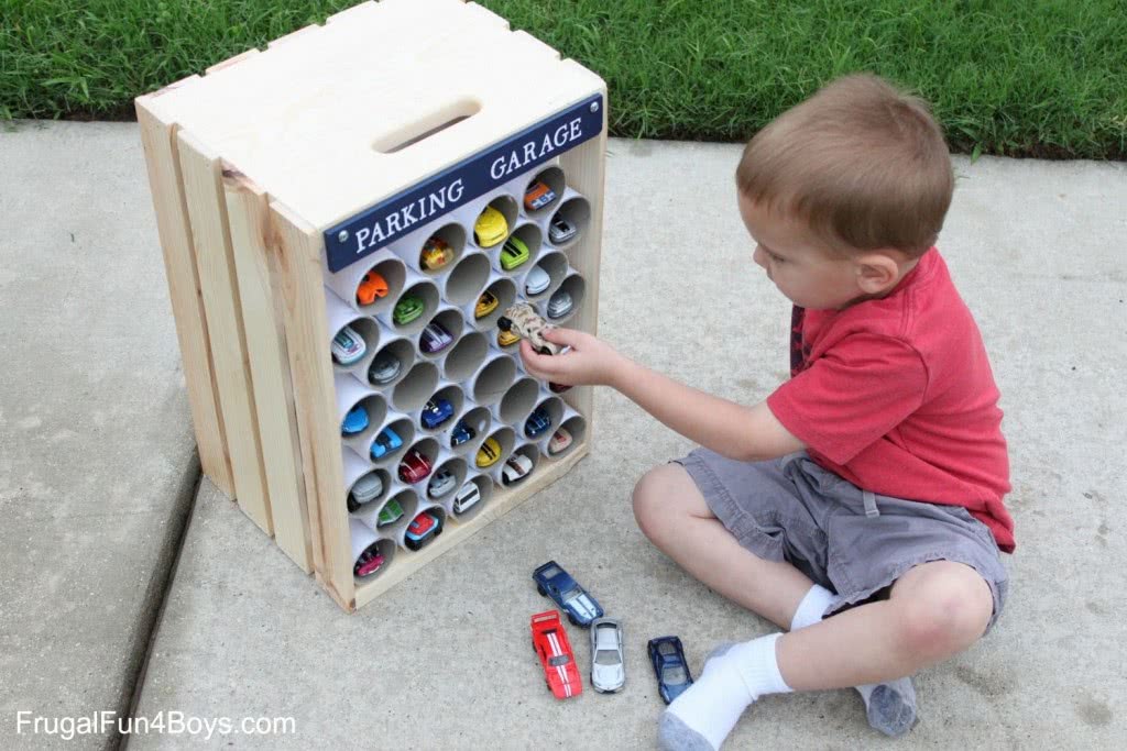 Кроме того, что это отличная идея для игры, такая парковка поможет решить вечную проблему с машинками, которые то и дело постоянно попадаются под ноги. Устроить эту игру с машинками своими руками проще простого.