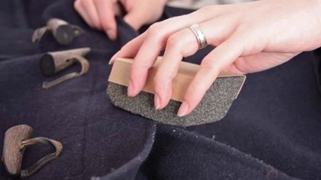 Изделия из драпа, шерсти или джинсы можно обработать лезвием или станком. Изделия с ворсом рекомендуется очищать зубной щёткой.