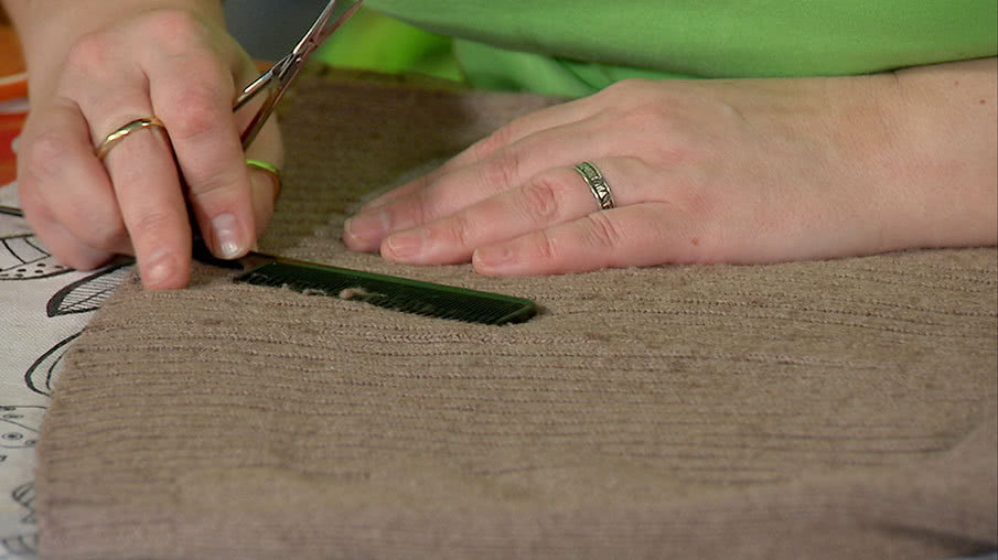 5. Если вы мастерски владеете маникюрными ножницами, то катышки можно аккуратно срезать.