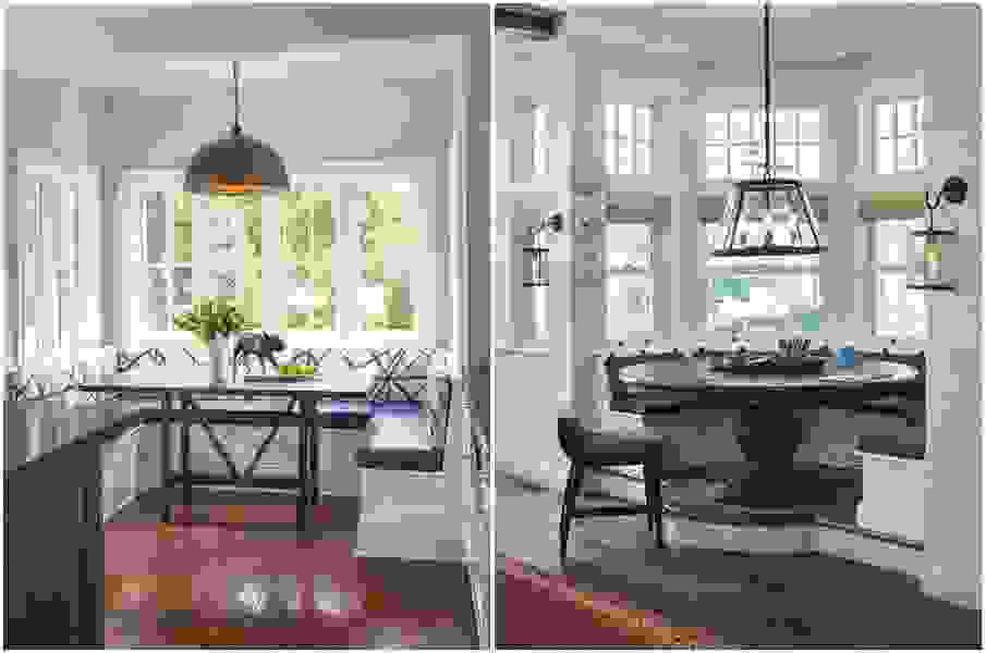 Дома старой застройки, в первую очередь «сталинки», славятся комнатами неправильной формы и различными архитектурными элементами, например, эркерами. С их помощью чаще всего оформляли большие помещения. Благодаря эркеру комнату можно зонировать, выделив в ней уголок для чаепития или lounge-зону. Подоконник с блеском решает проблему оформления этого архитектурного элемента. Если ему выпадет роль диванчика, то добавив небольшой столик и светильники, вы получите практически отдельное помещение.