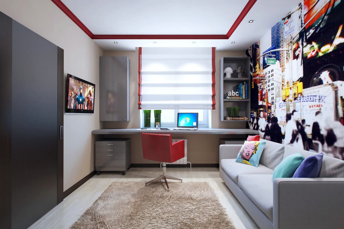 Именно так и поступил дизайнер интерьеров Степан Бугаев, обустраивая детскую комнату в одном из своих проектов. Они организовали прекрасное рабочее место для подростка, с максимальным количеством естественного света.