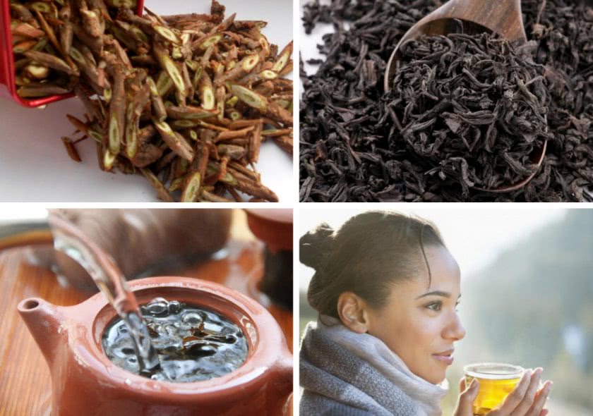 - Взять 1 часть высушенных веток растения и 2 части чая чёрного.