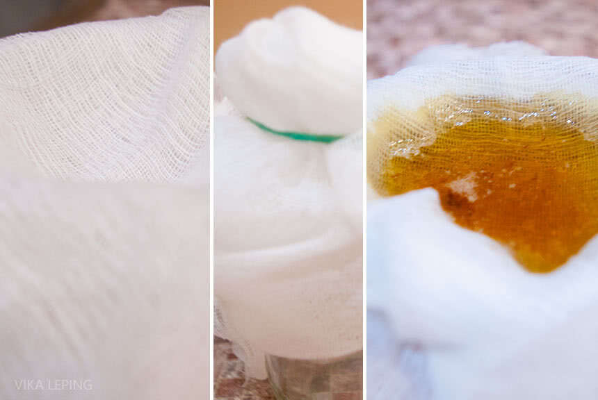 - Шаг 5. Приготовьте посуду для хранения. Подойдет стеклянная банка. Ее заранее нужно помыть (можно подержать на водяной бане) и немного нагреть. Приготовьте марлю для сцеживания.