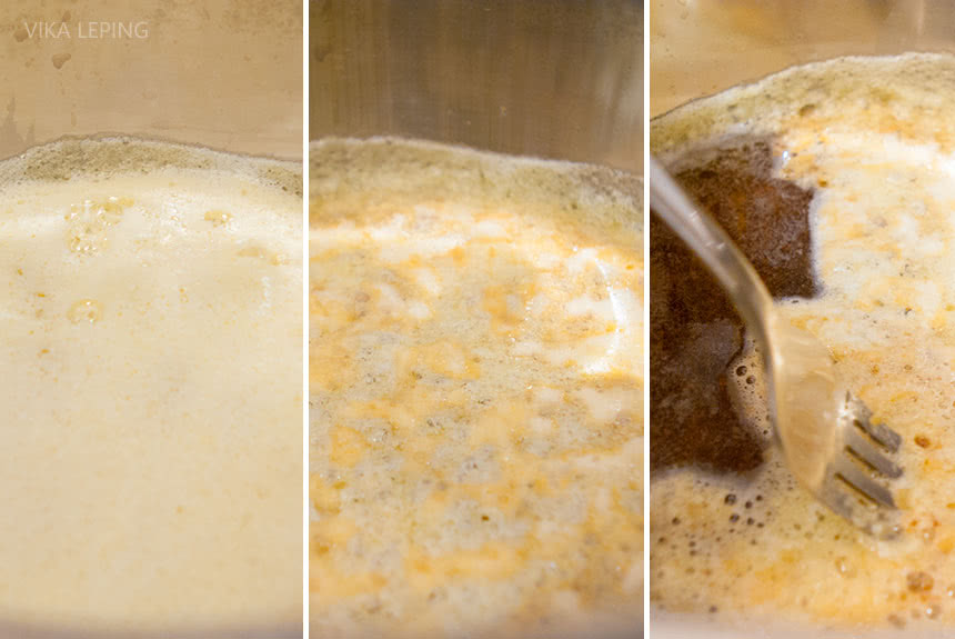 - Шаг 4. Когда пенка начнет менять цвет на более желтоватый, значит, пора снимать емкость с плиты.