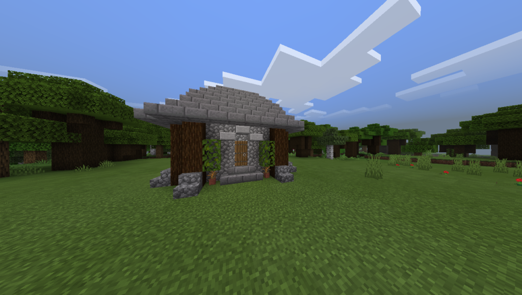 Процесс будет состоять из нескольких этапов, и мы начнем строить из тех ресурсов, которые доступны каждому игроку уже через час выживания. Основными материалами для постройки мы выбрали булыжник и дерево. Наша строение в конечном результате будет похоже на маленький, уютный и красивый простой деревенский домик.