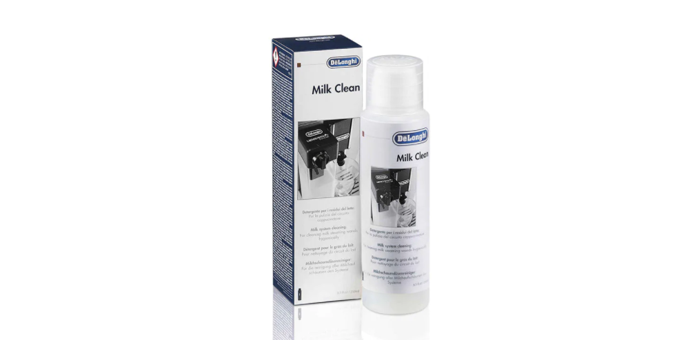 Еще один жидкий вариант для промывки автокапучинатора от осадка. Такое средство для чистки кофемашины DeLonghi содержит 250 мл вещества. Оно используется для удаления жировых и молочных остатков, для декальцинации солевых отложений. Стоимость: 2190 рублей.