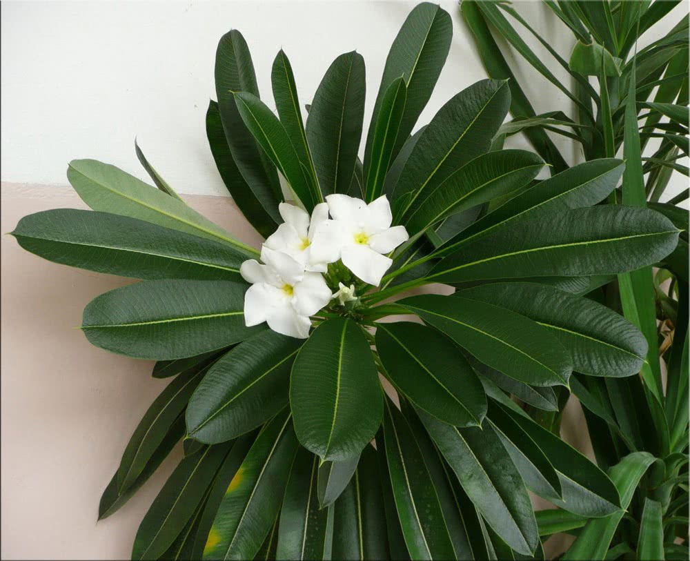 Высота этого компактного растения только 50-55 см. Этот вид очень схож с пахиподиум Ламера. Только у Жайи очень узкие листья, напоминающие рапиру. Цветочки с крупными белоснежными лепестками и серединкой желтого цвета.