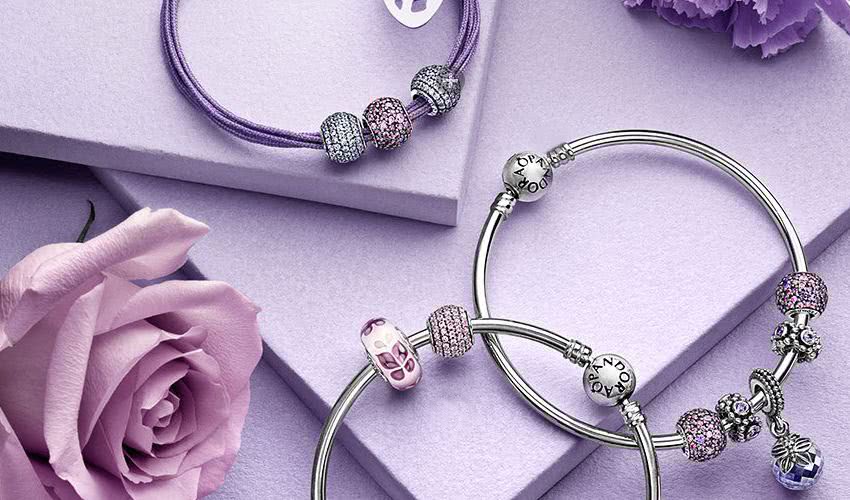 Браслеты Пандора, представленные в 2000-м, созданы по запатентованной системе набора деталей, которая позволяет добавлять подвески и талисманы и переставлять их местами. Пандора создала более 800 талисманов ручной работы из серебра, белого золота, муранского стекла с полудрагоценными (аметист, оникс и жемчуг) или драгоценными камнями.