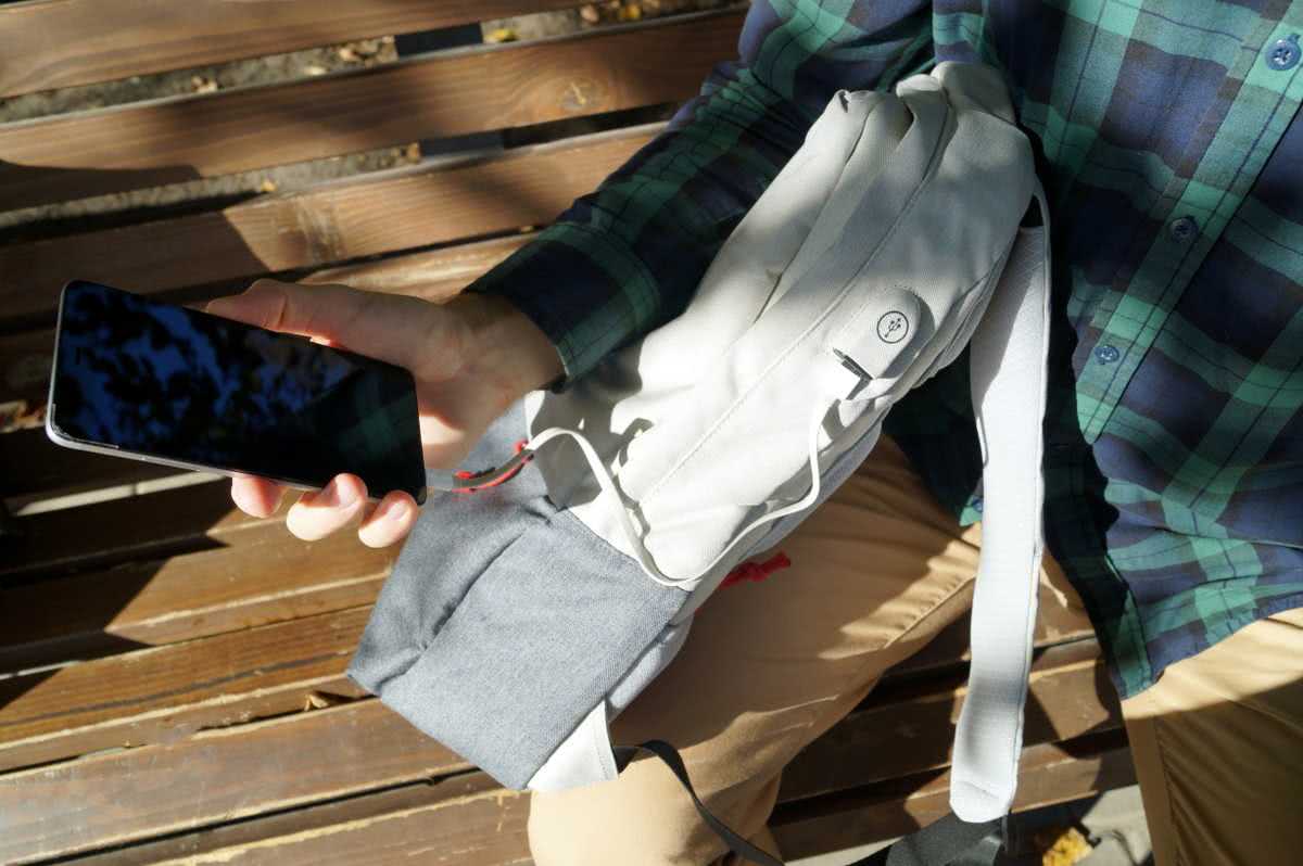 Этот рюкзак я заказал себе, вместо старенького бэга от Xiaomi. В первую очередь меня привлёк внешний вид и качество материалов. При таком крутом дизайне, рюкзак не промокает и сделан из плотной ткани. Внешне молний совсем не видно, они скрыты плотной тканью. Также, снаружи имеется несколько карманов, есть даже пару скрытых отсеков. Одной из прикольных фишек является выведенный USB-разъём. Если посмотреть внутри, к этому разъёму подходит кабель, который вставляется в power bank.