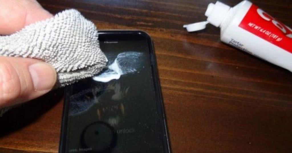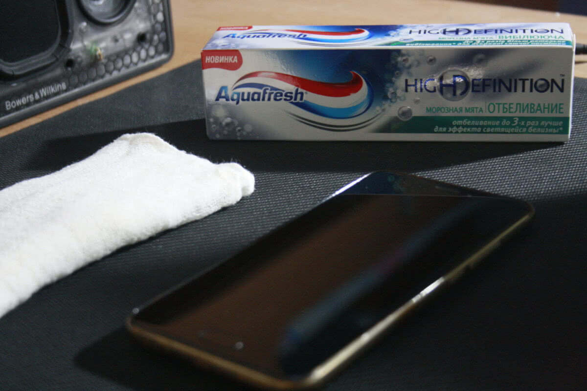 Применение зубной пасты. Этот способ прекрасно полирует стекло телефона, если оно не имеет сильных и глубоких царапин