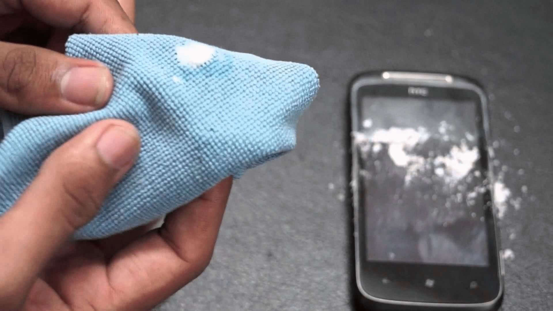 - После втирки, протирается дисплей влажной тканью. Это действие уберет лишнюю пасту.