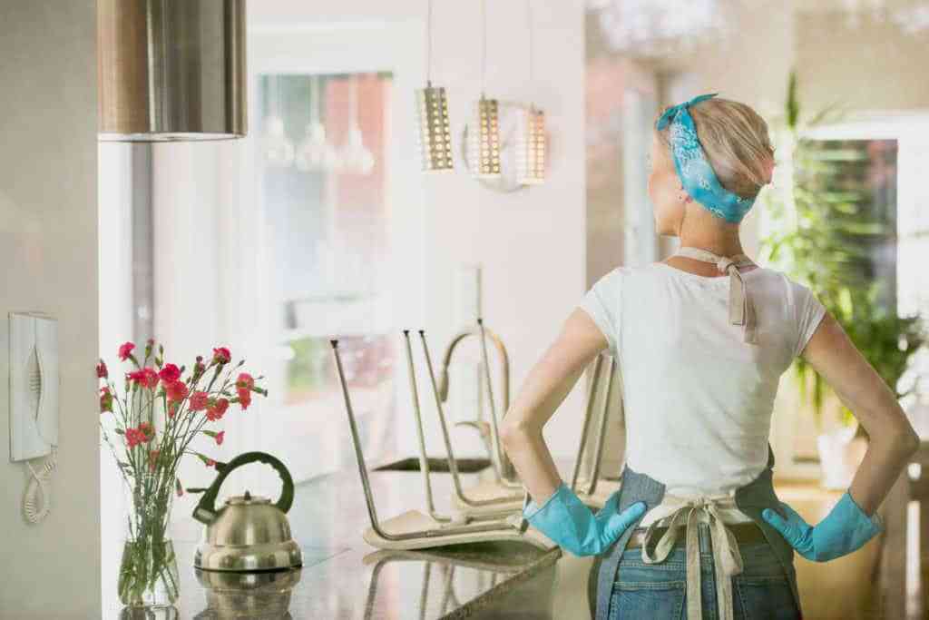 Приступаем к уборке. Начинаем с кухни, ведь там мы проводим большую часть времени, а значит и уборки здесь всегда больше всего. Не забудьте одеть резиновые перчатки.