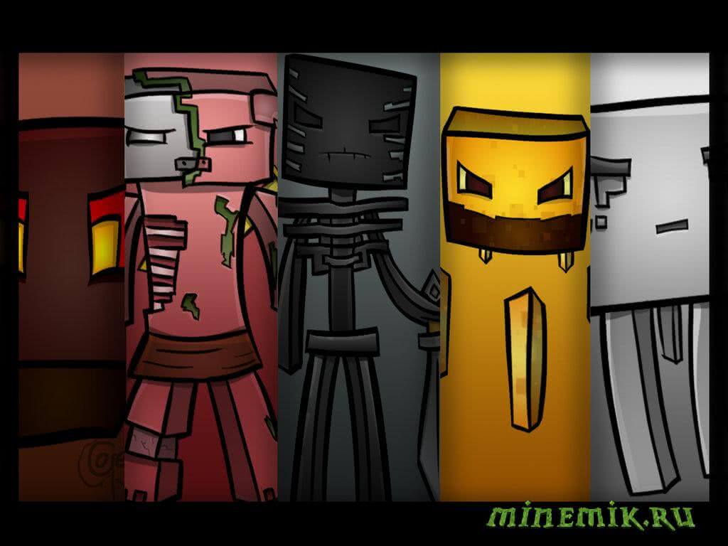 На самом деле в аду очень много весёлых ребят. Вы так же сможете встретить ифрита. С ним по осторожнее, ибо он под дозой и постоянно вертится, стреляя в вас огненными шарами, которые, как нам известно, летят прямиком из его горящего пукана. Кстати, он ещё и косой, а все потому, что под дозой! Если вы прошли ифрита и еще не лишились своих кровных, то, возможно, найдёте слизня из лавы. Если его убить, выпадет лавовый крем. Возможно, как раз этим кремом был намазан пукан ифрита.. Ещё адские слизни не умеют плавать, поэтому успешно утонут в любой лужи. И вот ещё один моб, которого вы сможете встретить в нижнем мире майнкрафта — это скелет иссушитель. Он очень нервный парень, поэтому атакует при любой возможности. При встрече с ним, игрок успевает на делать несколько десятков кирпечей, хотя этот моб не так уж и опасен. Реже можно увидеть обычных скелетов, но они не так уж страшны. На этой картинке изображены все мобы, которых можно встретить только в аду: