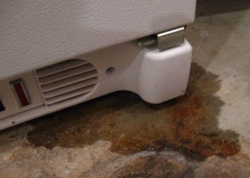 В этом случае жидкость вместо того, чтобы вытекать в специализированный сборник, попадает на поверхность пола. Случиться такое может из-за неаккуратной перестановки прибора или при неправильной транспортировке.