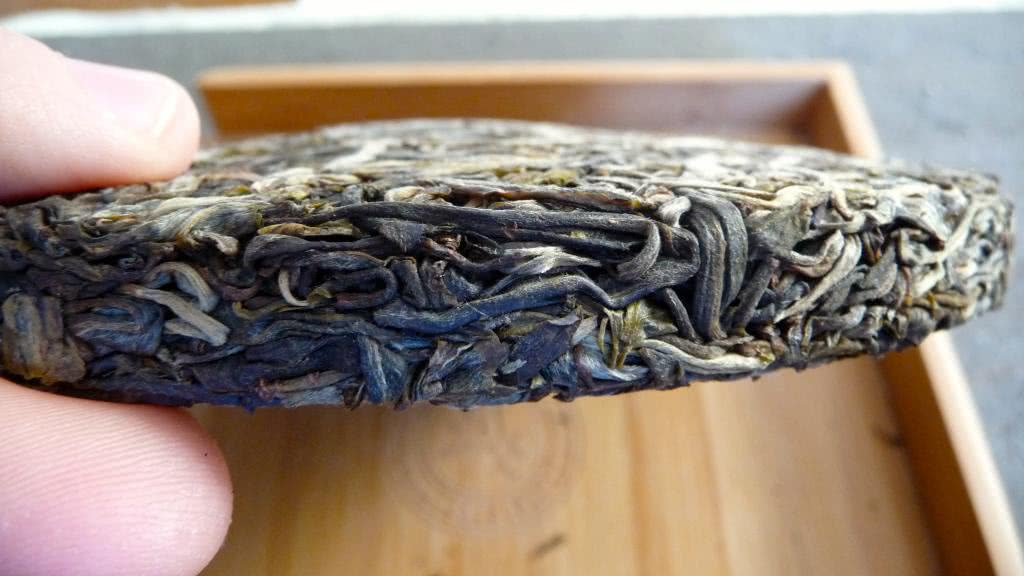 - Качество прессованной лепешки. Должны просматриваться чайные листья с приятными глазу оттенками. Шу – коричневый, шен – зеленоватый, ореховый. Если привлекает белый пуэр – он будет светлый, белесый с вкраплениями темного.