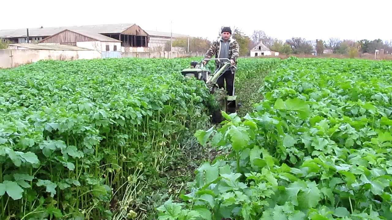 После получения зелени культура скашивается. Затем трава тщательно измельчается и углубляется в грунт, в котором будет выращиваться лук, картофель или любые другие культуры.
