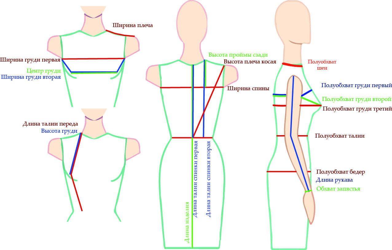 Для изготовления выкройки одежды, нужно снять мерки в соответствии с особенностями фигуры человека: