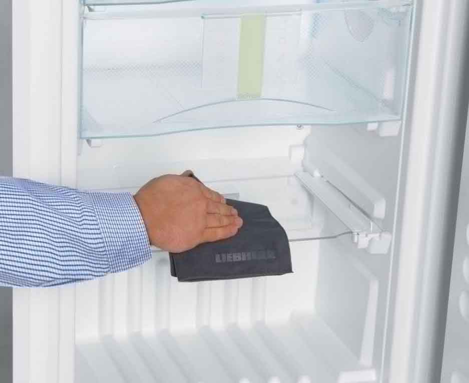 После нанесения любого средства поверхности промываются мягкой тряпкой с теплой водой. Поверх протрите бумажным полотенцем. Не закрывайте дверцу, чтобы стенки основательно просушились. Параллельно промойте и высушите съемные элементы.