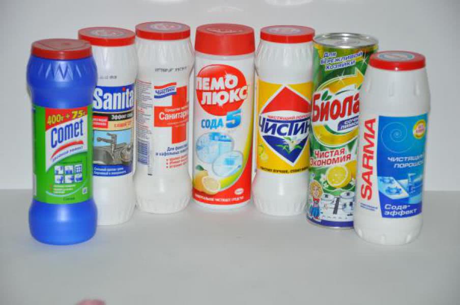 Фунгицидные средства считаются высокоэффективными и имеют сравнительно невысокую стоимость. Универсальные средства для борьбы с грибковыми образованиями: «Доместос», «Мистер Мускул», «Комет».