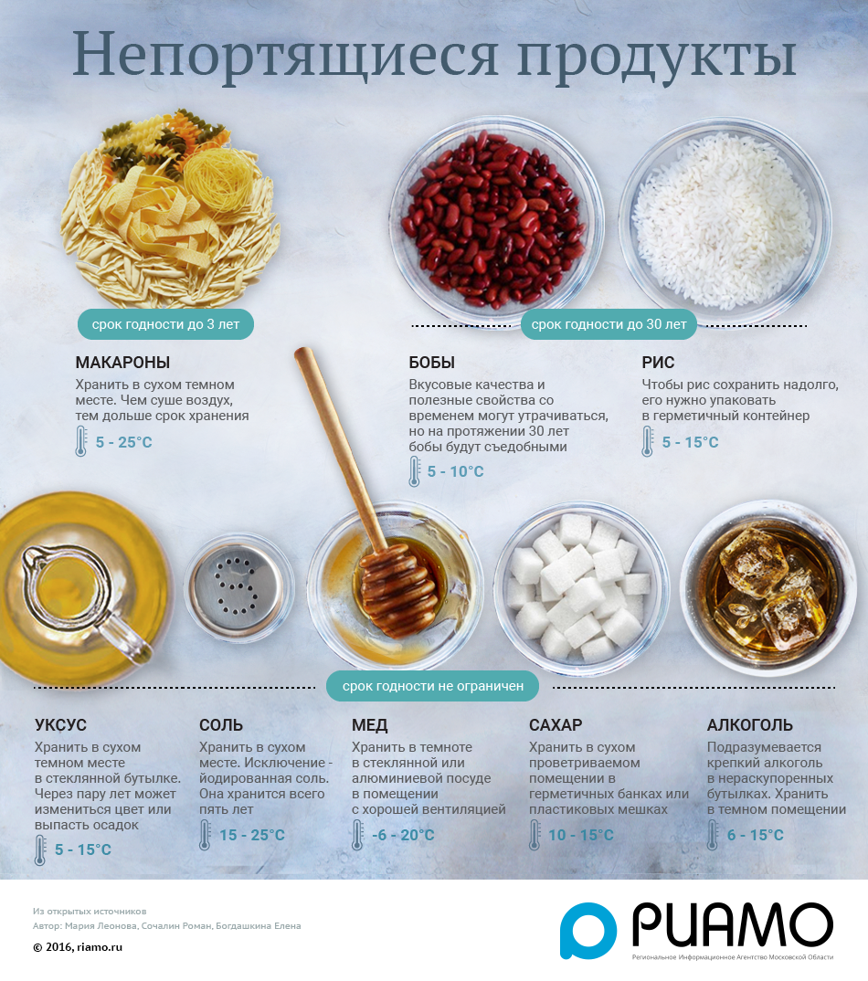 При изменении условий хранения (низкая температура, плохая влажность), снижаются и сроки годности.