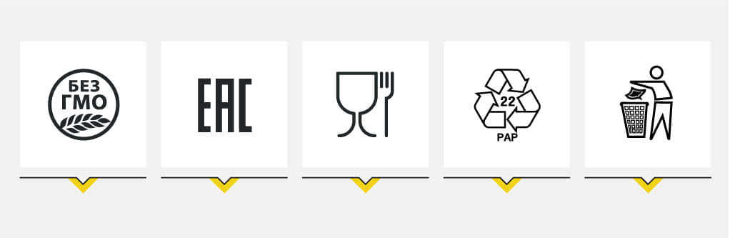 Маркировка ЕАС. Обязательная маркировка, информирующая покупателя о соответствии товара Таможенному регламенту Евразийского Экономического Союза. Этот знак означает, что мука соответствует требованиям международной безопасности стран-участников Союза и может продаваться на их территории.
