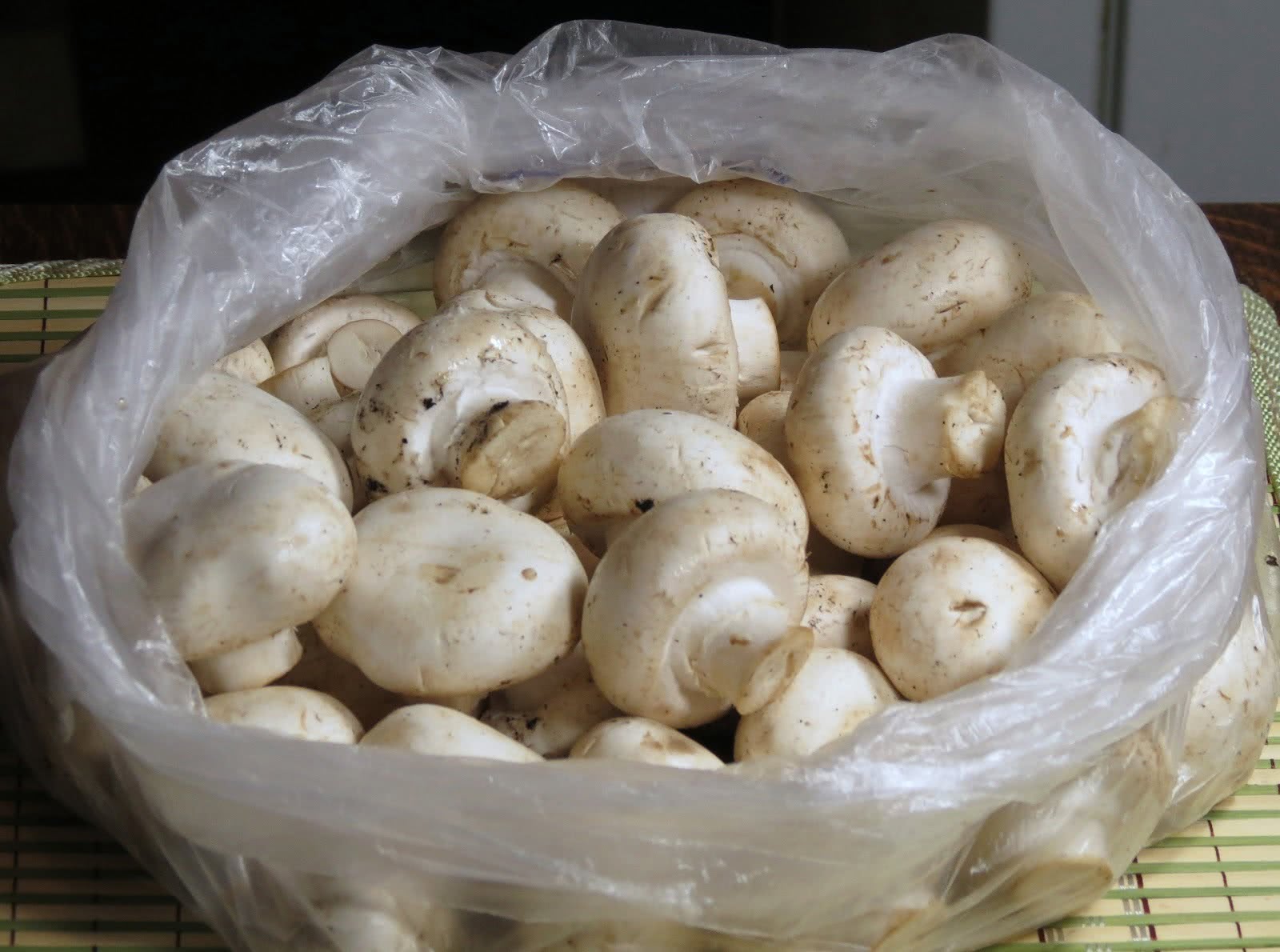 Хранить купленные шампиньоны лучше в бумажных пакетах, так как в пластиковых пакетах они «потеют» и приобретают неаппетитный вид. И запомните, хранить грибы можно в нижнем отделе холодильника, но не более 2 дней.