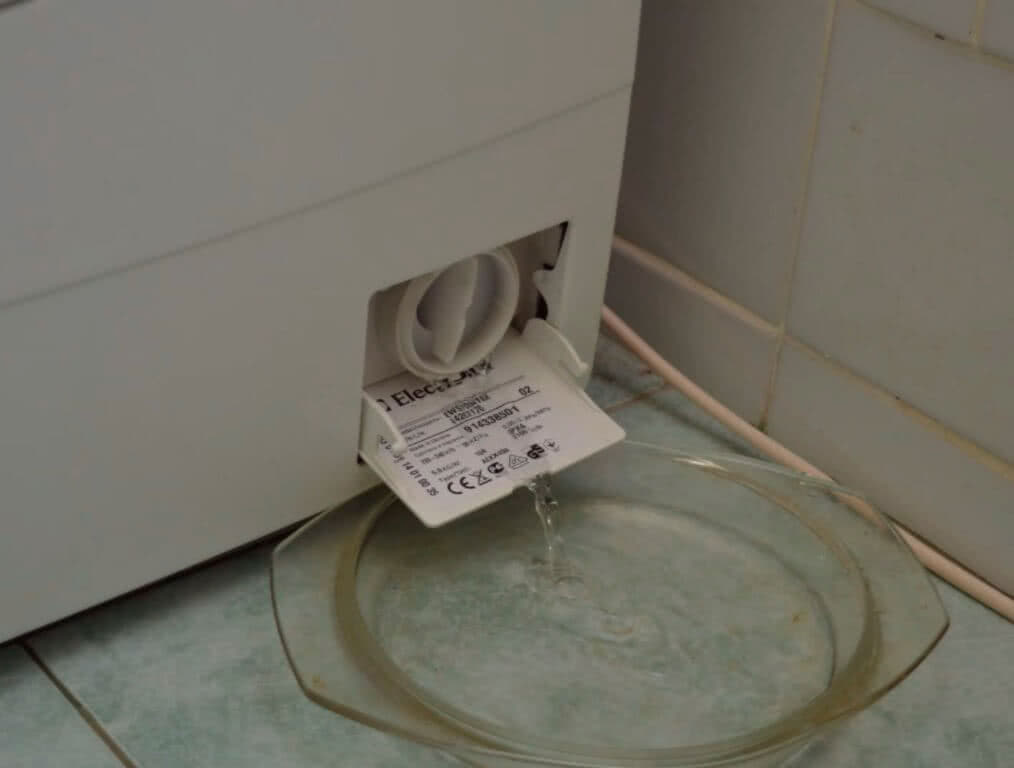 Важно помнить, что в барабане может быть вода и когда дверь откроется, она может устроить потоп в помещении. Если визуально воды много, рекомендуется после остановки программы стирки, запустить слив
