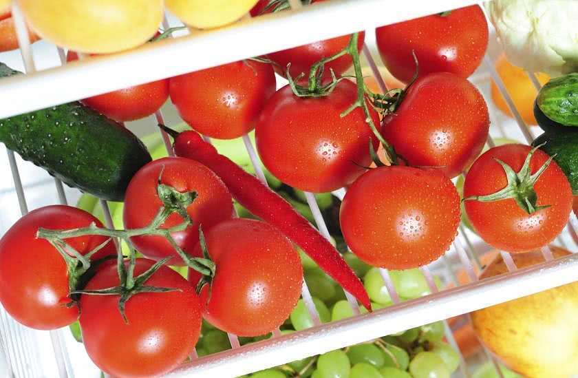 Надолго сохранить свежесть поможет всем известный способ — в холодильнике. В нем срок годности помидоров получится продлить аж до 2-ух недель! Также чуть недозревшие овощи хранятся дольше, чем перезрелые. Стоит отметить, что при температуре ниже +15 градусов по цельсию все овощи теряют свои богатые витаминами вещества и вкусовые качества. Хранить томаты в холодильнике надо только в крайнем случае.