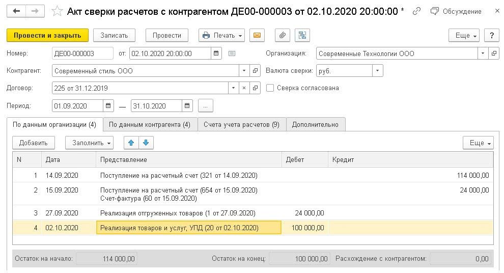 Теперь акты сверки расчетов с контрагентами можно формировать с указанием реквизитов УПД, которым оформлена операция.