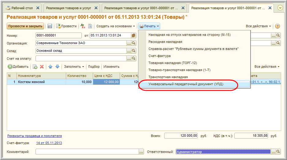 Под отгрузкой товаров понимается в том числе передача (поставка, отпуск) товара (груза). Выставлять УПД как счет-фактуру следует при использовании функции СЧФ или СЧФДОП. При этом, если сформирован УПД с функцией СЧФ, отдельно можно отправить УПД с функцией ДОП – как первичный учетный документ. |