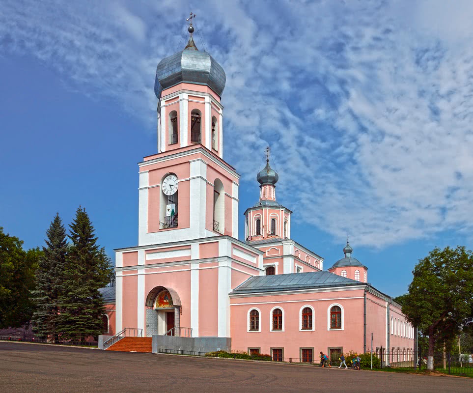 Троицкий собор был построен в 1744 г на месте ранее существовавшего деревянного собора. Тогда он располагался на Торговой площади, на Озерной стороне. В 1802 г. освящается Пятницкий предел, а в 1803 г. — Тихвинский. Собор построен в стиле развитого барокко. Имеет открытую галерею на уровне второго света четверика… |