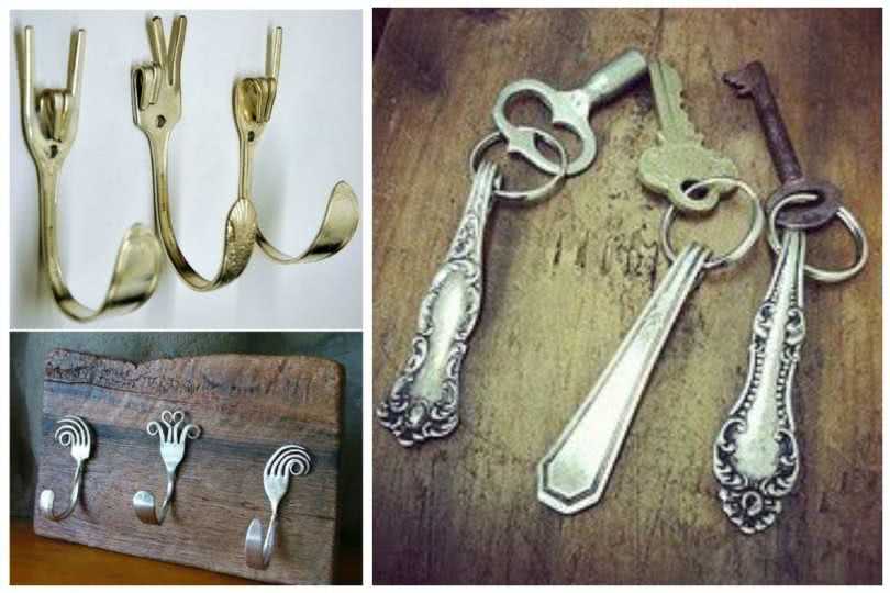 К примеру, эти же вилки можно применять для создания вешалок, специальных подставок. Также для создания крючков и полок в дело могут вступить пластиковые ложки. Если для такого процесса используются столовые приборы из металла, то они могут стать довольно необычным элементом украшения помещения, к примеру, в стиле хай-тек либо модерн.