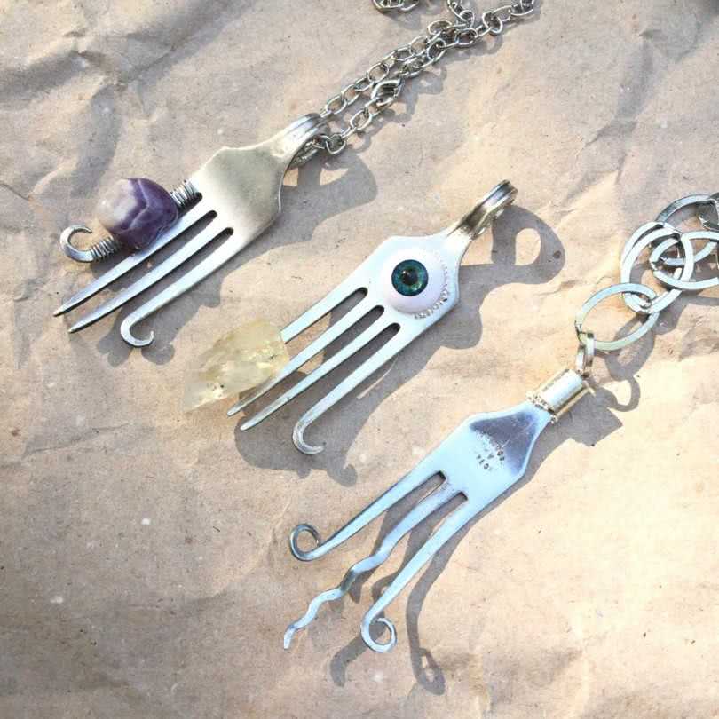 Для этого необходимо взять ложку или вилку с узорами, отполировать ее и соединить тонкой цепочкой. Все максимально быстро и просто.