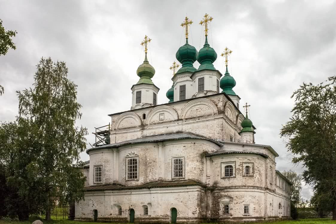 Особое внимание стоит уделить иконостасу ручной резьбы. Находится собор на левом берегу Сухоны на Соборном дворище;